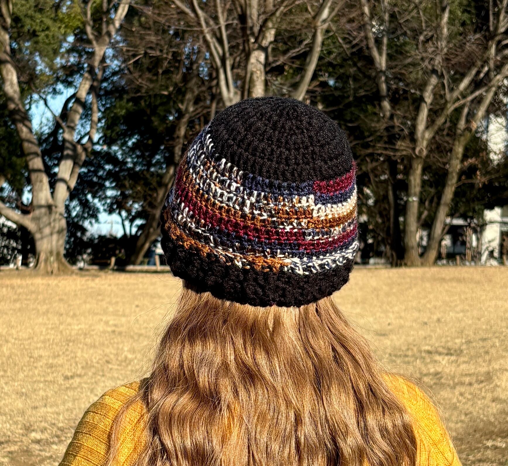 スタイリッシュなブラックと多彩な混色が組み合わさった魅力的なニットキャップ。